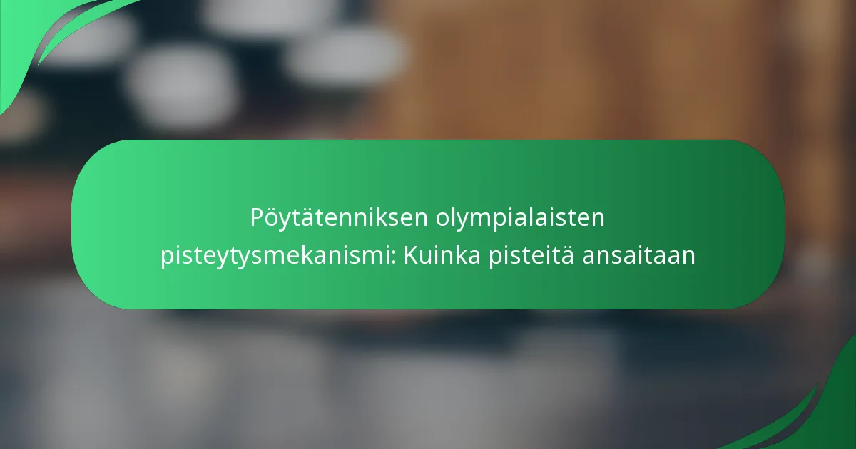 Olympialaisissa pöytätenniksessä pisteitä ansaitaan rallipisteytysjärjestelmän avulla, mikä varmistaa, että jokainen ralli johtaa pisteeseen yhdelle pelaajalle. Ottelut pelataan tyypillisesti paras seitsemästä -formaatissa, jossa pelaajien on saavutettava 11 pistettä voittaakseen pelin, samalla kun heidän on ylläpidettävä kahden pisteen etumatkaa. Tämä pisteytysjärjestelmä on kehittynyt ajan myötä pelin vauhdin ja katsojien sitoutumisen parantamiseksi, vaikuttaen pelaajien strategioihin otteluiden aikana.